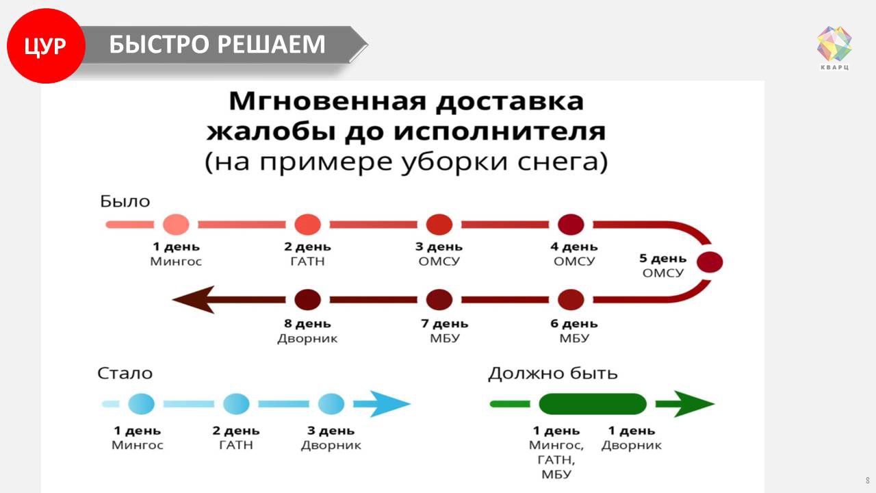 С 1 октября 2019 года в Подольске заработал муниципальный центр управления регионом. Система областная, в нее стекаются жалобы абсолютно со всех источников: "Добродел", интернет, приемная администрации, социальные сети, средства массовой информации - и не только. Если раньше претензия к исполнителю доходила около недели, то с появлением ЦУРа этот срок уменьшился до минимума. К тому же у администрации появилась возможность напрямую контролировать особо проблемные вопросы. У новой системы мониторинга уже есть первые результаты.