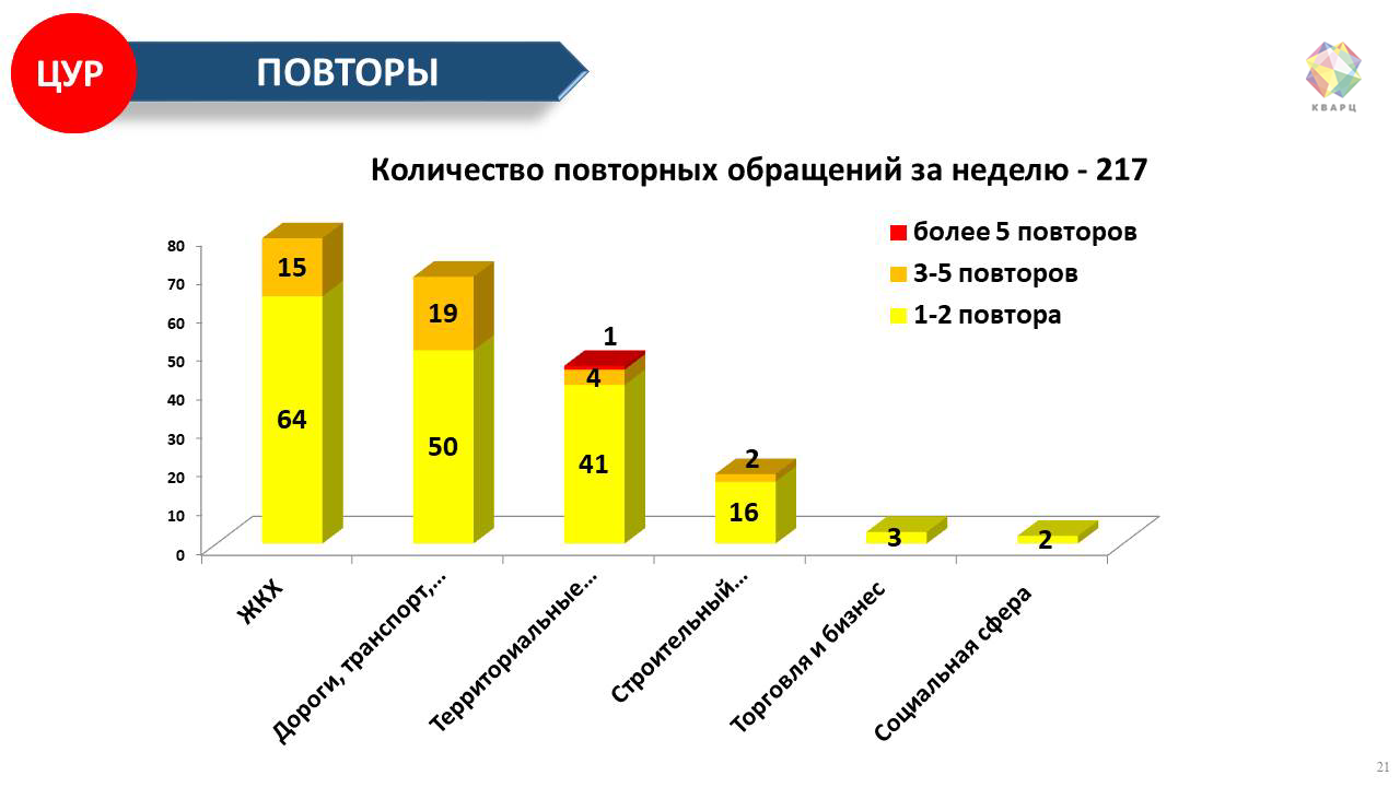 – За истекшую неделю повторных обращений 217, из них 79 по линии ЖКХ, причем 15 – это те обращения, которые поступили от 3-5 раз повторно, 69 – дороги, транспорт – 1 обращение, которое поступило 7 раз, – сообщает Денис Жабин, заместитель Главы Администрации г. о. Подольск.