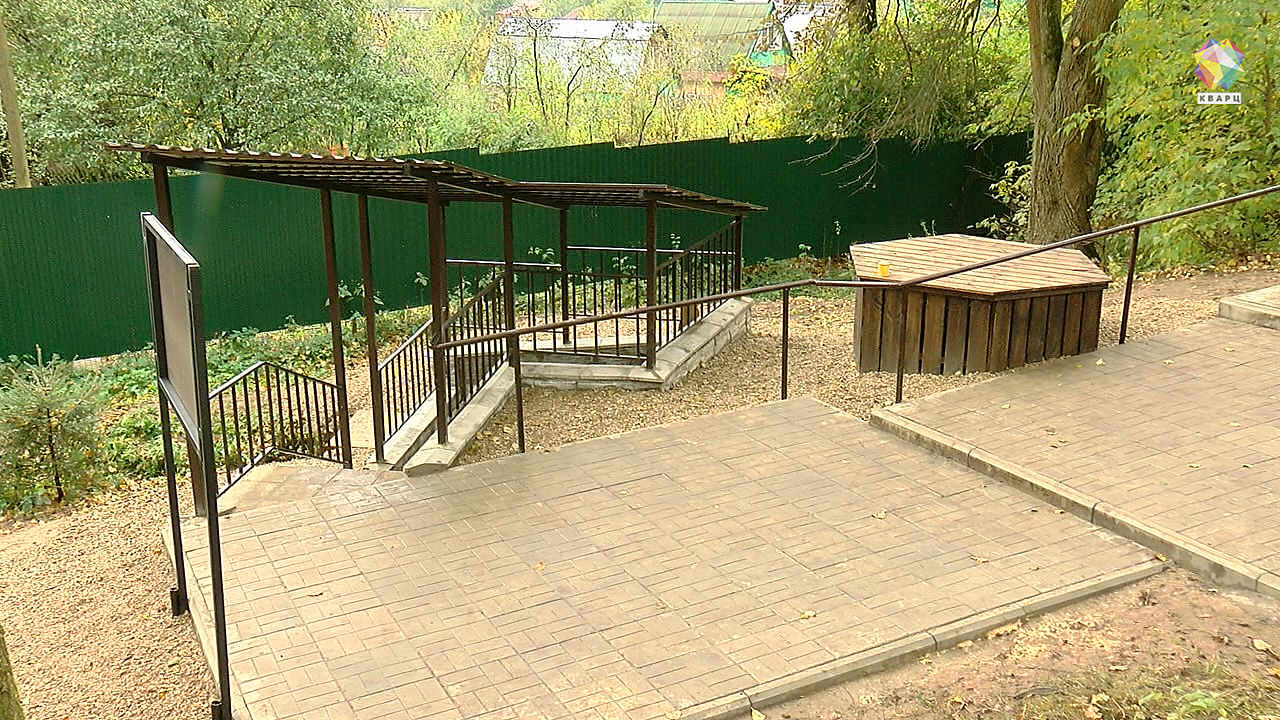 Буквально за месяц на месте грунтовой тропы появился комфортный спуск с перилами. Рядом благоустроена площадка с местом для отдыха. Сама чаша родника выложена плиткой.