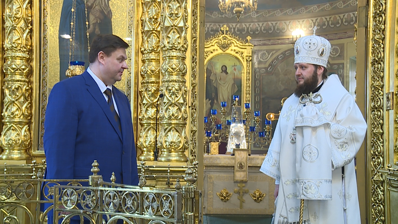 В главном храме города к архиепископу Аксию обратился глава Подольска Николай Пестов.
