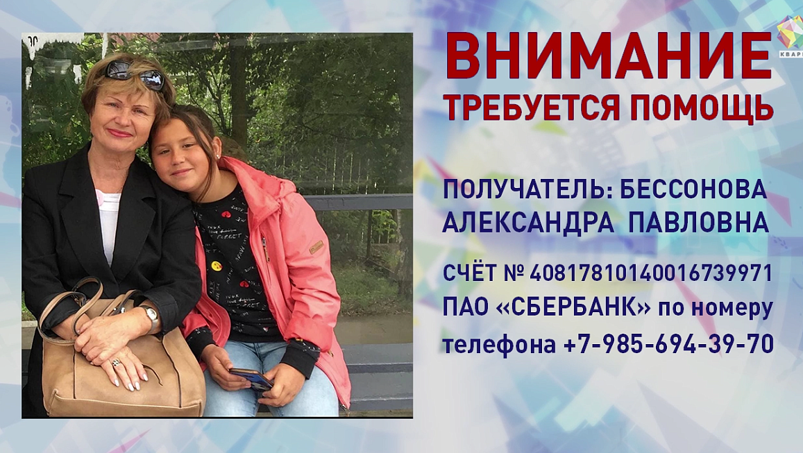 1 февраля Кате была сделана операция в институте Бурденко. Однако кардинально помочь ей могут лишь в немецкой клинике. Цена жизни –шесть миллионов рублей. Сумма непосильная для семьи Бессоновых. За минувшие сутки собран уже миллион. И мы точно верим, что вместе мы сможем помочь.