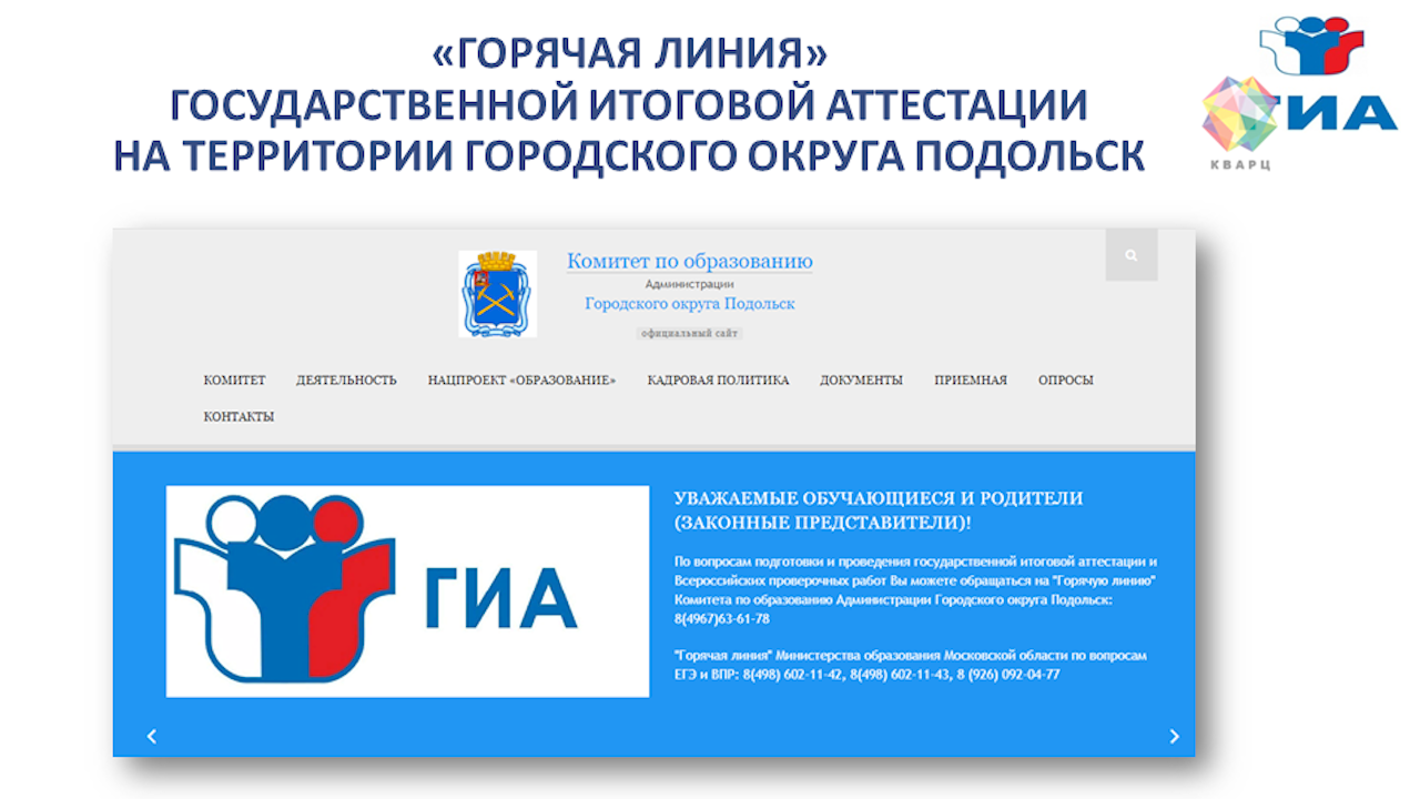 - Если раньше для получения аттестата надо было сдавать минимум два основных экзамена и плюс еще по выбору (в зависимости от того в какой ВУЗ решил ребенок поступать), то обязательный экзамен в этом году только один - русский язык, - отметила председатель комитета по образованию Администрации г.о. Подольск Надежда Фролова.