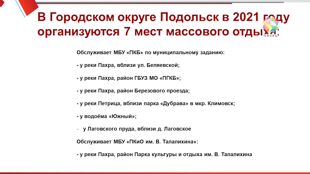 Полным ходом в округе идет и подготовка к летнему сезону мест массового отдыха у воды. В Большом Подольске таких 7.