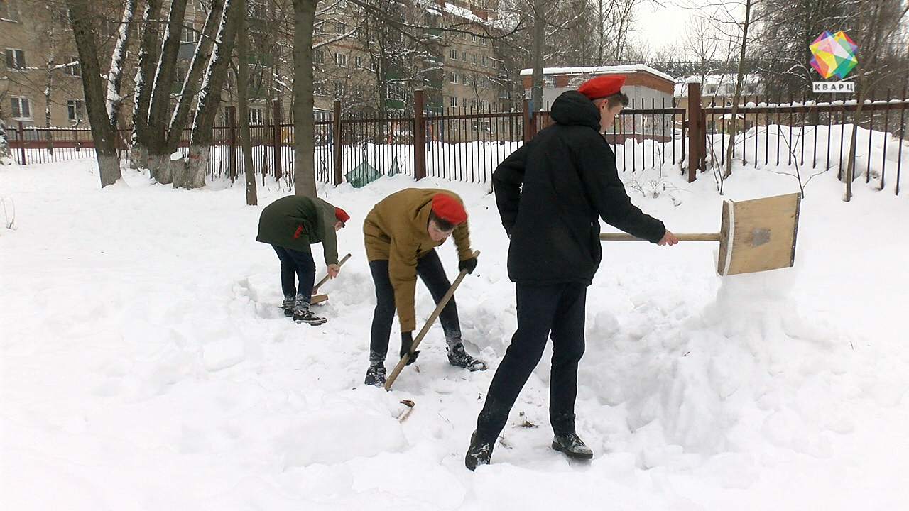Ребята Подольской школы № 18 сегодня расчищают игровую площадку для малышей. Детский сад «Ручеек» после нескольких дней метели как никогда нуждается в помощи юных армейцев. Сама же акция стартовала в начале месяца, начали с ветеранов.