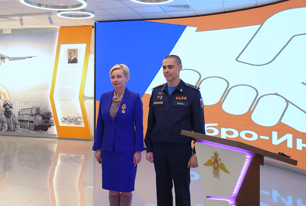 Анна Пермякова и Михаил Федосов отправляют на передовую медикаменты и вещи, проводят адресный сбор и доставку необходимой помощи. Награды подольчанам вручил начальник Службы спецконтроля