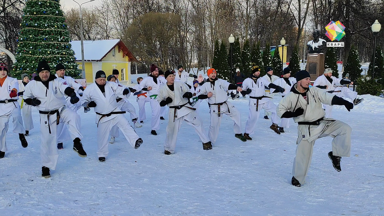 Масштабно и зрелищно. В парке Талалихина подольская школа Кёкусинкай каратэ провела открытую тренировку. Подобная практика - не просто добрая традиция клуба, а ещё и способ укрепления духа на холоде. От энергетики каратистов не устояло даже солнце, оно подбадривало спортсменов на протяжении всего часа.