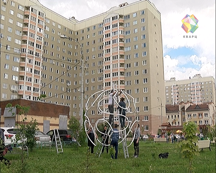 «Мы с целью увековечивания, я думаю, победы нашей команды поставили вот такую стилизованную фигуру мяча. Я думаю, что это будет своего рода Кубком, сувениром. Если Россия победит - мы его выкрасим в золотой цвет, если будет серебро - значит в серебряный, а пока вот такая белая конструкция», - рассказал автор идеи Виктор Макаров.