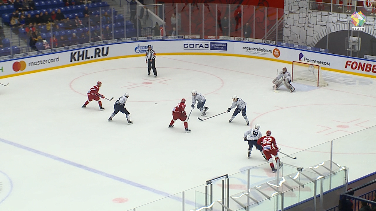 Взаимные атаки продолжились! Антон Красоткин по-прежнему надёжен! Нужно отметить, что первые 20 минут обе команды отыграли без удалений. Бело-красные больше, чем соперник, проводят времени в атаке, но несмотря на это второй период гости начинают с отрыва! 0:2. Актив за Юрием Петровым!