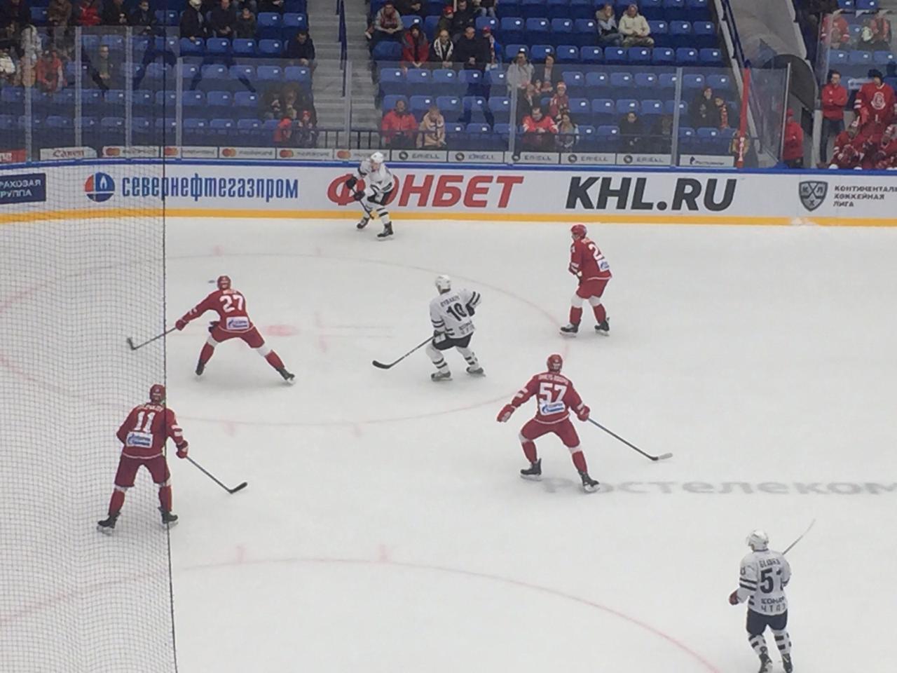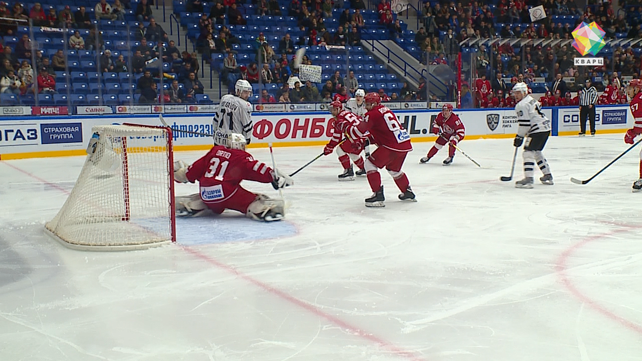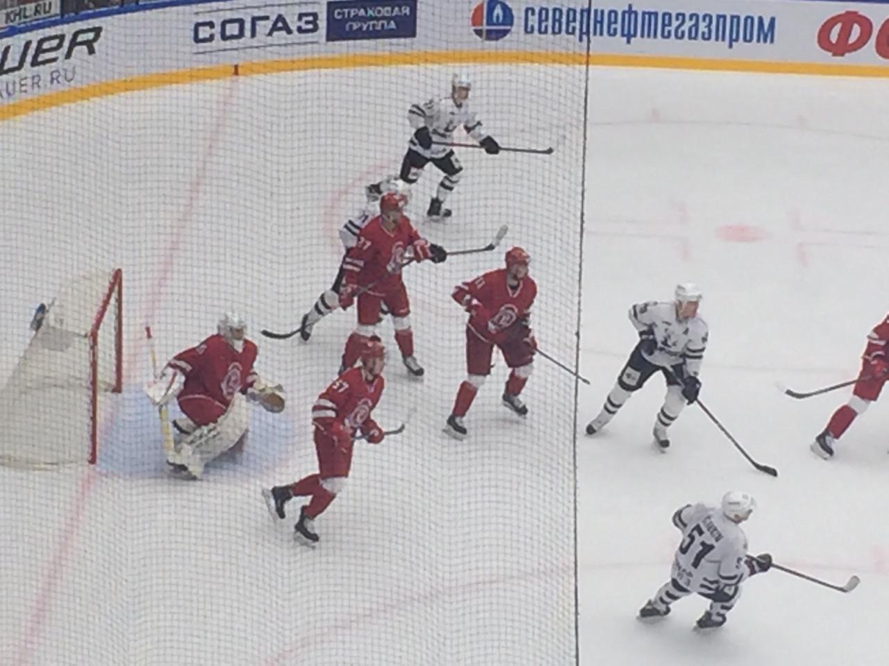 Как только команда «витязей» стала играть в полном составе, нарушают правила уже противники. Преимуществом богатыри не успели воспользоваться, хоть и очень старались. Гости явно недовольны поворотом встречи. Технично они раз за разом прорываются к воротам Ортио. Интрига сохраняется. Чем меньше времени остается, тем быстрее рассекают лед хоккеисты. Войтех Мозик остается без клюшки, но не расслабляется, он продолжает играть и защищать ворота своей команды, пока их атакует противник. Вот это схватка! А чуть позже преимущество за нами. Штрафной бросок выполняет Александр Семин и выводит богатырей вперед! 3:2! «Давай еще!», - скандируют трибуны.