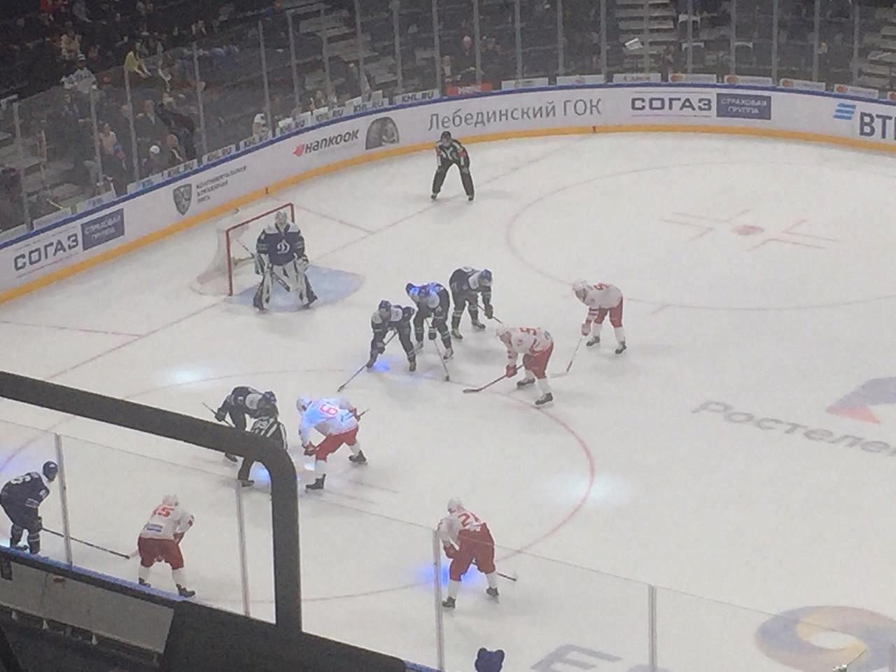 Хотя у москвичей последние игры не задаются (три проигрыша) и дружина Кравеца успех чередует. Но все же совсем недавно на подольском льду удалось выиграть динамовцам со счетом 4:1! На чьей стороне удача в этот раз? Старт встречи и ряд взаимных удалений. На них, нужно сказать, будет богат весь матч.