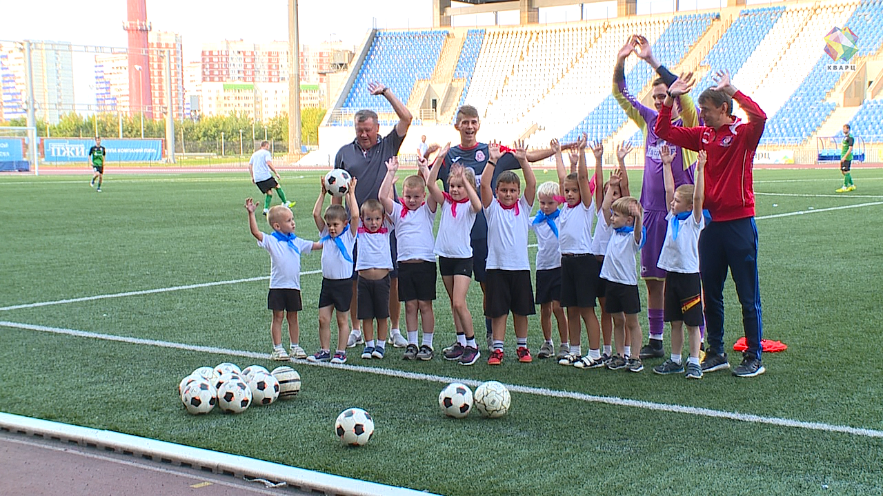 Чтобы воспитать достойную смену нашим футболистам, готовить их нужно с юных лет. В перерыве матча на поле вышли воспитанники детского сада №25 «Улыбка».